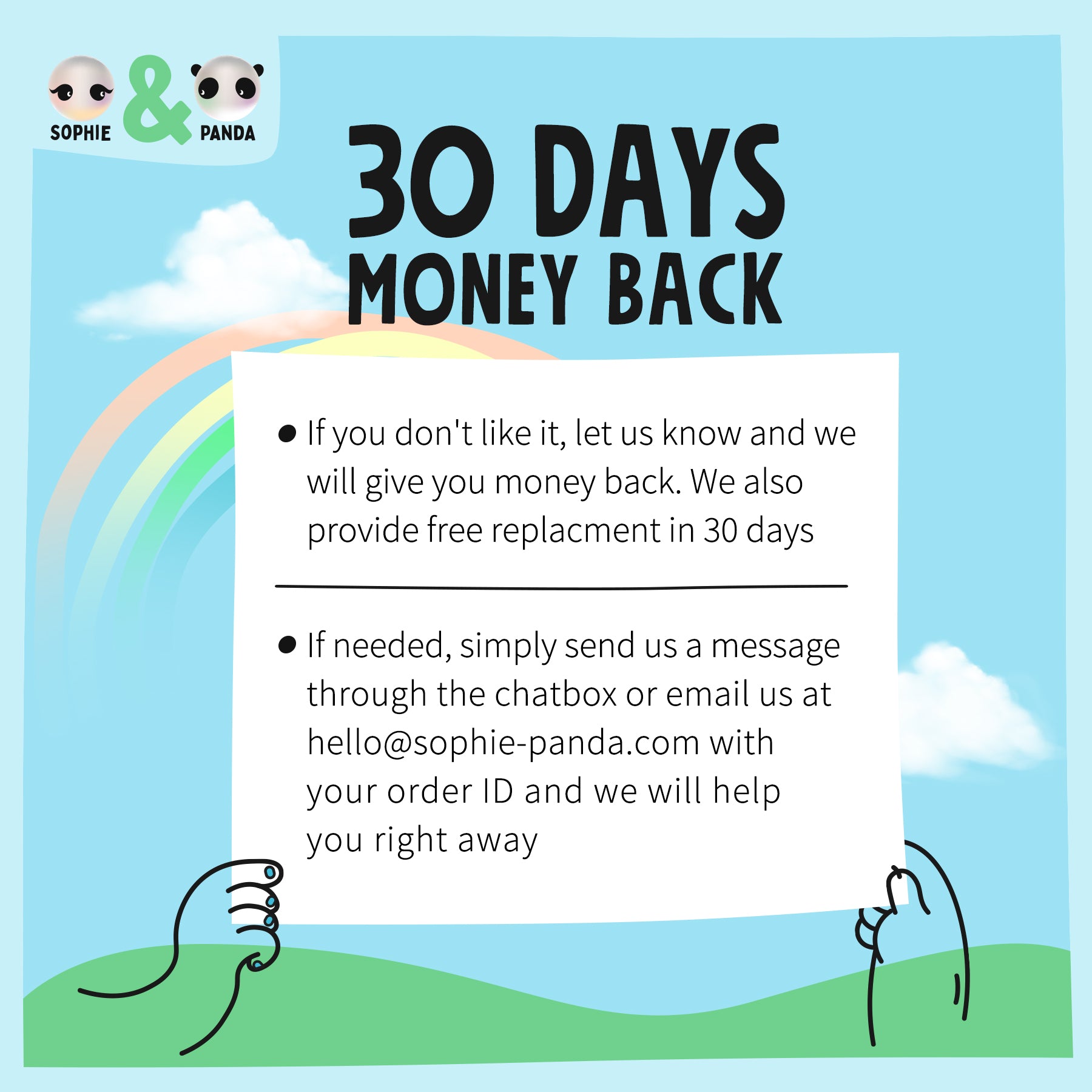 • LOVE IT OR YOUR MONEY BACK – At Sophie & Panda, we’re committed to creating eco-conscious, high-quality products that make you smile. If you’re not completely happy, we’ll make it right with a full refund or free 30-day replacement — no worries, no hassle.