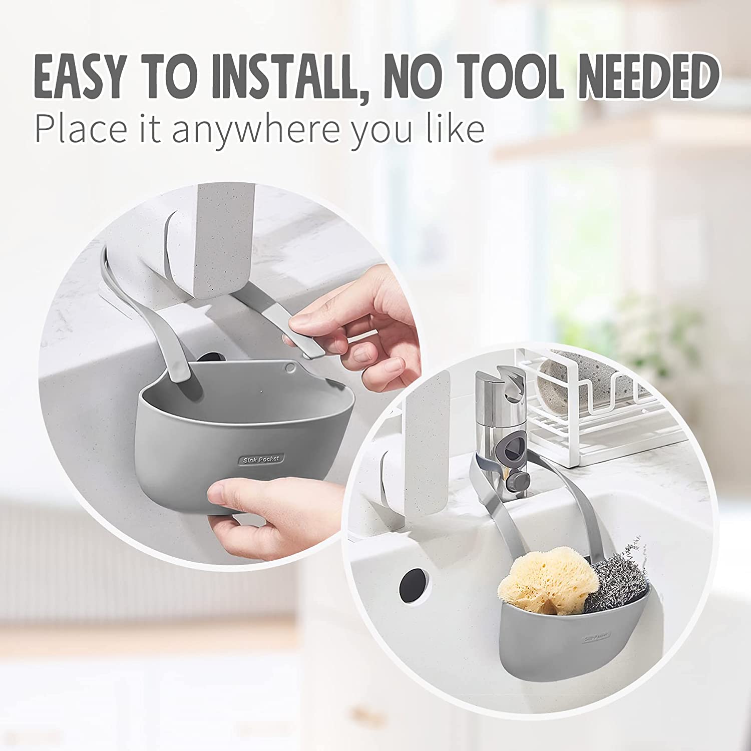 - GET CREATIVE WHILE ORGANIZING THE KITCHEN - Keep your kitchen sink organized with these sponge holder bags! Simply hang the sponge and soap holder on your water tap and you’re ready to go; no tools are needed for installation, it’s easier than ever; plus they’re lightweight and portable for travel!