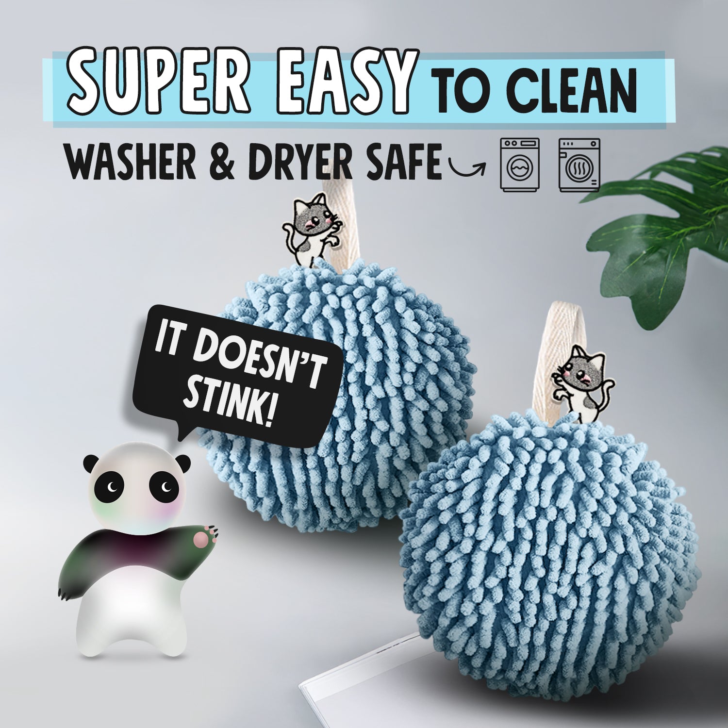 • DRY YOUR HANDS INSTANTLY & EFFORTLESSLY – Tired of towels that barely absorb? Made with ultra-absorbent microfiber chenille, our Kitty Cat fuzzy ball hand towels dry your hands in seconds. The fluffy, rounded design makes it easy to rub and quickly wick away moisture between your fingers.