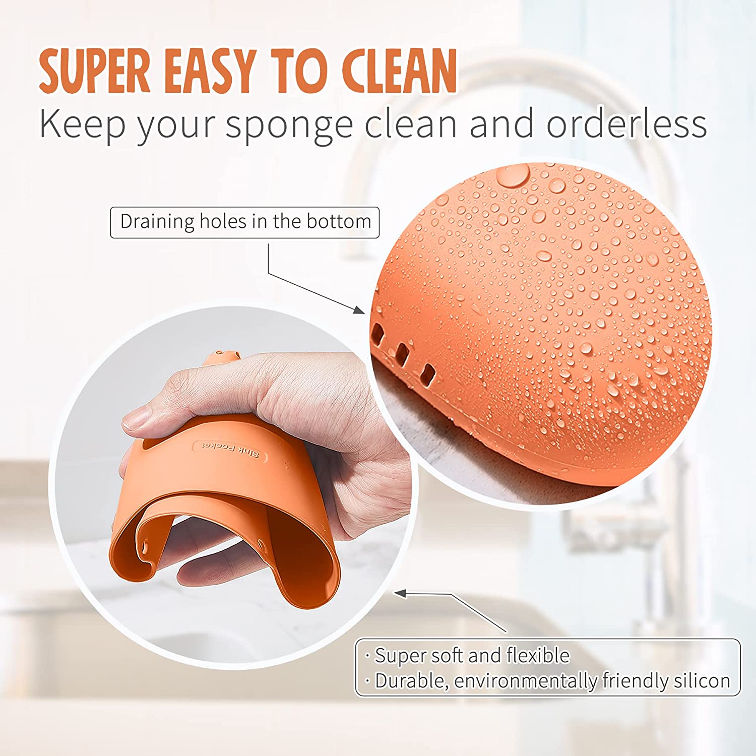 - EASY TO CLEAN NO FUSS NEEDED - No one likes cleaning the kitchen sink! With this sink caddy made from super flexible silicone, you’ll always have a clean kitchen; this sponge holder for kitchen sink has draining holes on the bottom for sanctuary protection; leaving your sponges and cleaning tools safe to use; the flexible silicone material makes this design easy to clean and use